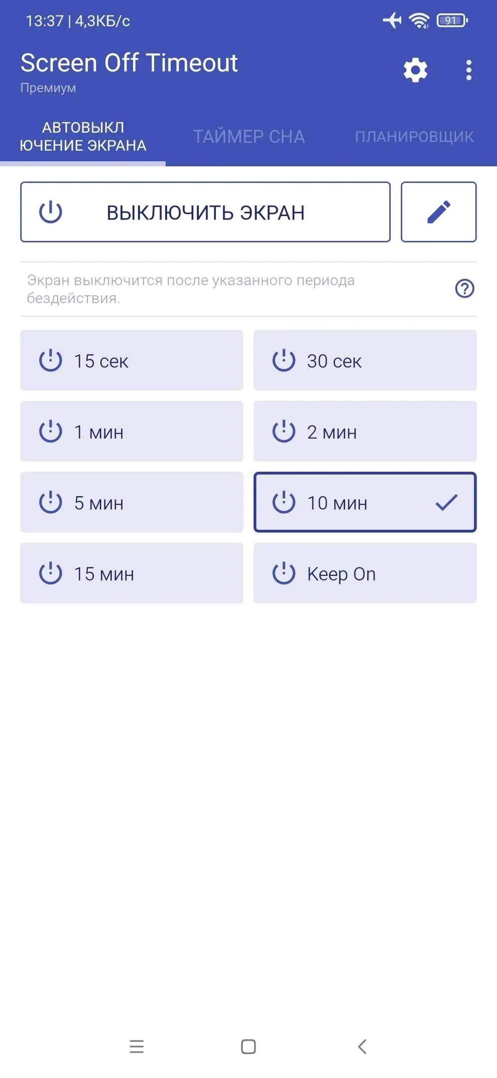 Скачать Screen Off Timeout (Premium) v2.6.9 бесплатно на андроид