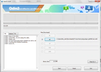 Шаг 10 - Нажмите кнопку «START» в окне ODIN. Начнется процесс установки, который будет продолжаться несколько минут;